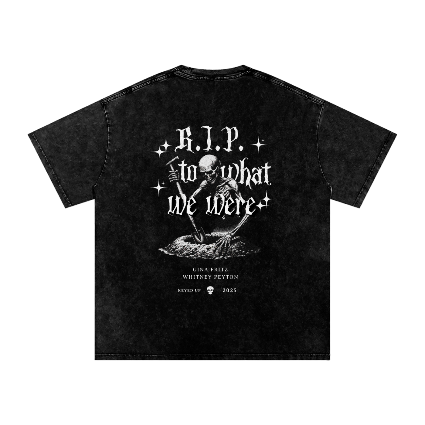 Keyed up RIP-TEE! Oversized, Acid Wash, and unisex! Print on front and back.